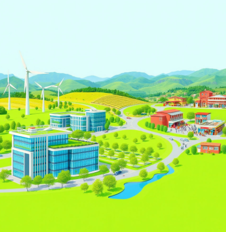 풍력발전단지와 신재생에너지가 이끄는 미래 산업이 공존하는