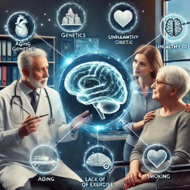 치매는 한 가지 원인으로 발생하는 것이 아니라, 여러 요인이 복합적으로 작용합니다. 대표적인 위험 요인은 다음과 같습니다.